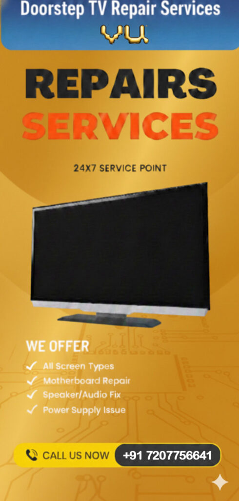 When your VU TV stops working properly, it can interrupt your entertainment and daily routine. That’s where Doorstep TV Service comes in — Hyderabad’s trusted choice for VU TV repair at home. Whether it’s a minor glitch or a major issue, we repair all VU TV models, including LED, QLED, UHD, and Smart TVs, restoring your TV to perfect working condition without any hassle.